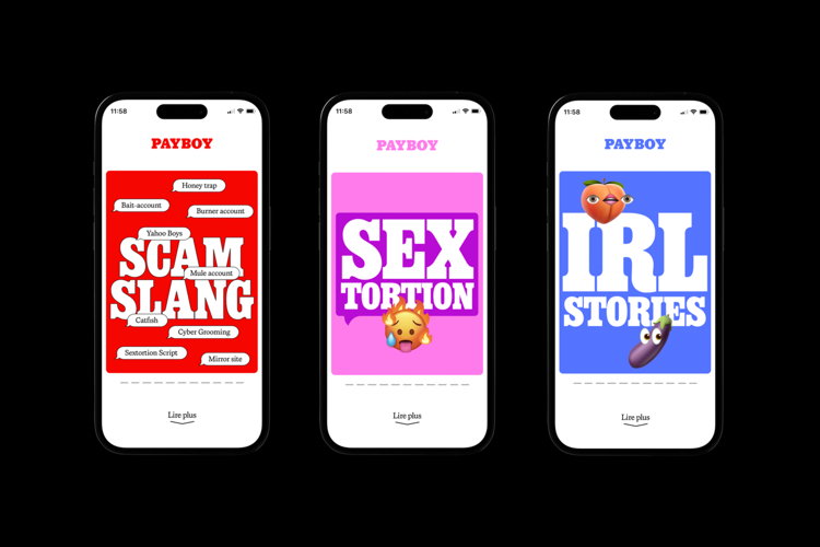 La campagne fait clairement un clin d’œil au célèbre Playboy, mais avec une touche plus sombre. Au lieu du contenu séduisant bien connu, Payboy montre les faux profils ainsi que les photos et vidéos trompeuses que des criminels utilisent pour piéger les jeunes.